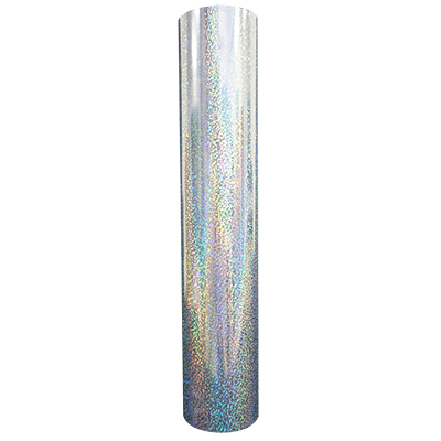 產品特質:七彩鐳射刻字膜搭配雷射切割機將圖案切割完後再挑除廢料即可轉印至成品上,七彩銀星鐳射刻字膜光亮奪目、色澤繽紛選擇多,因為角度不同會有不同的折射變化,大多使用在休閒服飾或裝飾上。