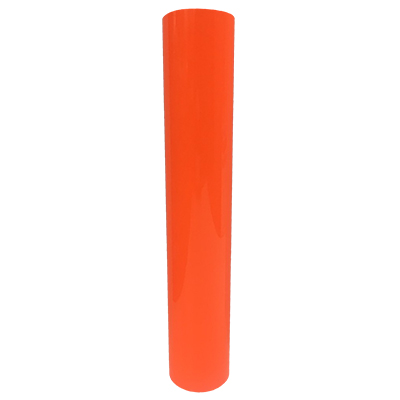產品特質:螢光橘啞光刻字膜為彈性PU材質,搭配雷射切割機將圖案切割完後再挑除廢料即可轉印至成品上,啞光刻字膜經高溫燙印也不易變形,色澤鮮豔且款式選擇多,著色牢固質地較為柔滑,大多使用在運動球衣、服飾配件等。